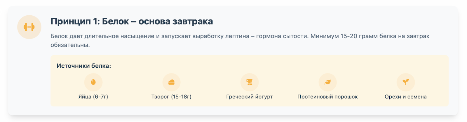 - Принцип 1: Белок – основа завтрака