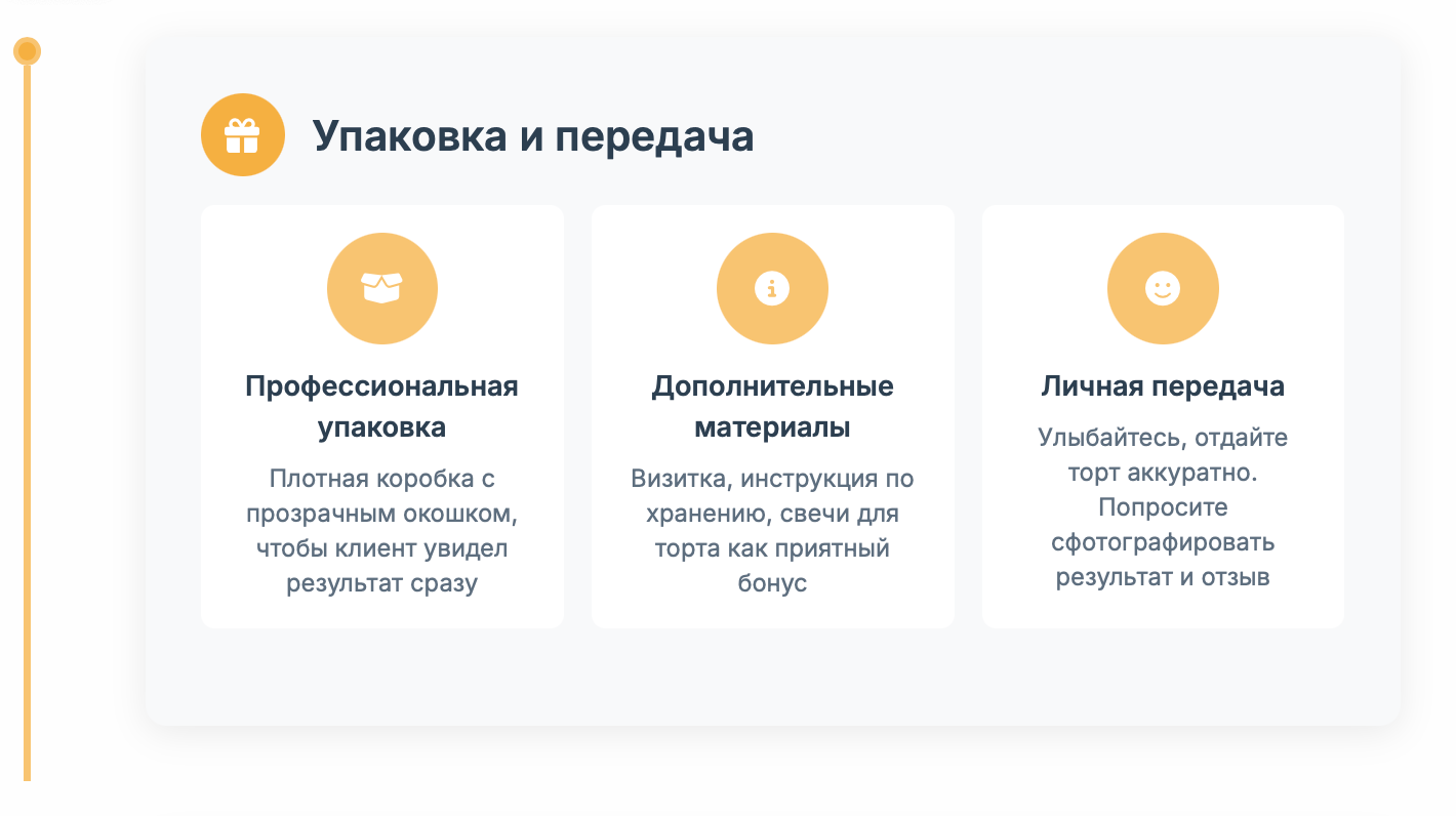 Через день после передачи напишите: «Как вам торт? Всё ли понравилось гостям?» Собирайте отзывы — это ваш актив для привлечения новых клиентов.