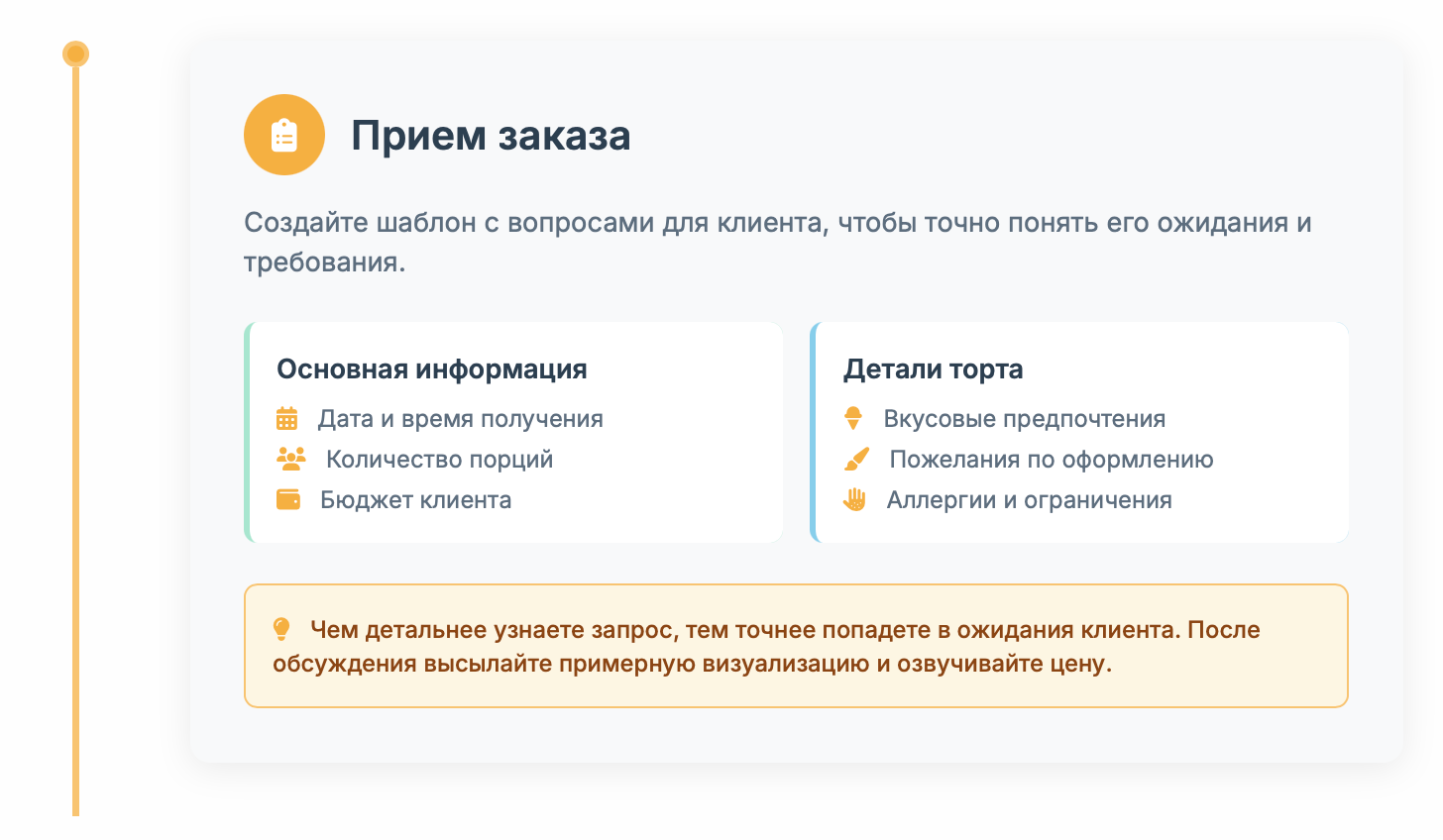 Профессиональный сервис отличает успешных кондитеров от тех, кто быстро выгорает. Давайте разберем весь цикл работы с заказом.